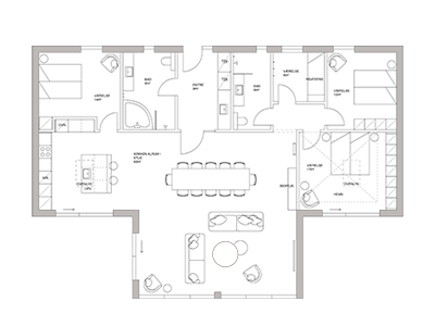 De helt unikke plantegninger i husene, gør at at dig og din familie bliver taget helt tæt på naturen. Rummelighed, funktionalitet og lysindfald er nøgleordene, og med de velindrettede værelser er der plads til hele 10 overnattende gæster.